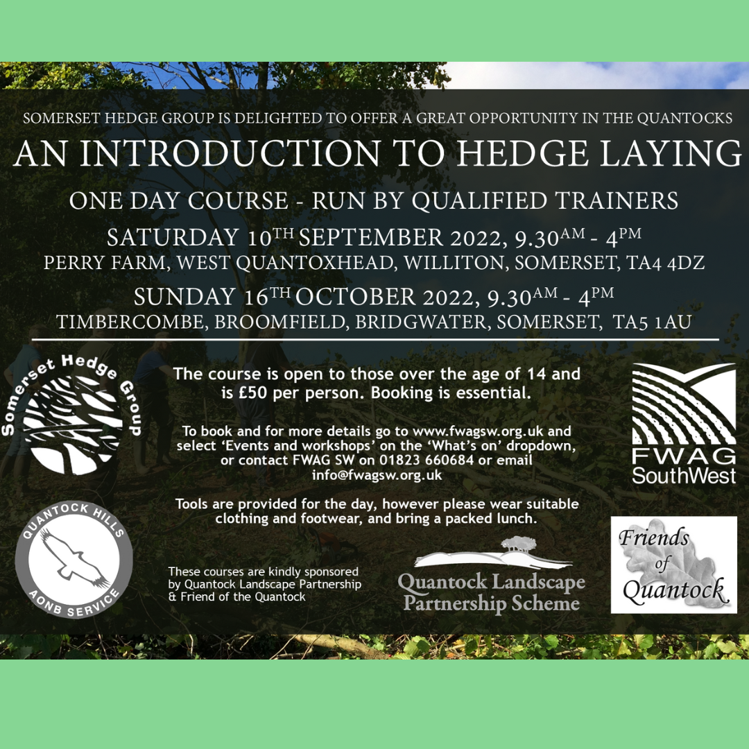 The QLPS is proud to sponsor the Somerset Hedge Group. This year they are running two, one day training days, led by qualified trainers.
